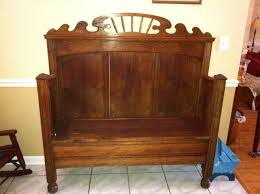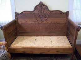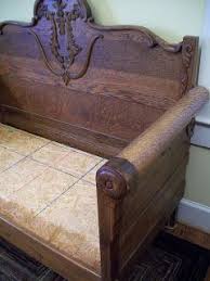 The trick for making these benches is finding a good antique bed to repurpose. Antique hall bench victorian upholstered high back bench blue 1800s. My favorite style of rope bed is a jenny lind.