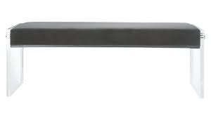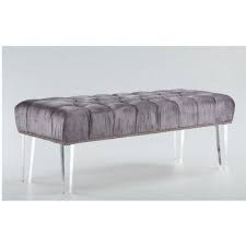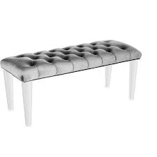 Grey velvet bench. It comes in a wide array of colours and styles. Sleek acrylic base clears the way for plush upholstered seat of luxurious velvet. This collection is available in a variety of engaging colors and is the perfect addition to the bed.