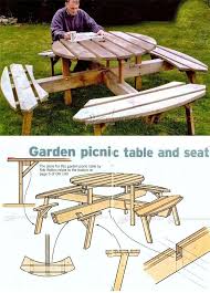 Round picnic bench plans. So i ve got over 40 picnic table plans that are absolutely free to share with you. These wooden picnic table have two benches and a table top but it s a one piece unit for solid construction. Cut the ends at 25 degree angle cut on both ends in the same direction.