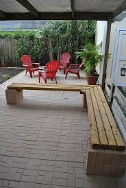 The sides are made of cement blocks stacked and joined together while the seat and back were crafted from wide slats of smooth wood which have been painted red to achieve the colorful look. Our selection of wood workbenches includes a few solutions. Cement blocks and wood garden bench.