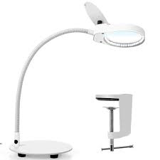 Xyk rechargeable 5x magnifying lamp large hands free magnifying glass with light and stand for reading hobbies crafts close work workbench 4 3 out of 5 stars 103 38 99 38. 3 powers 10 50 2 powers 9 95. One is a plain light and the other has the magnifier lens both with led lamps.